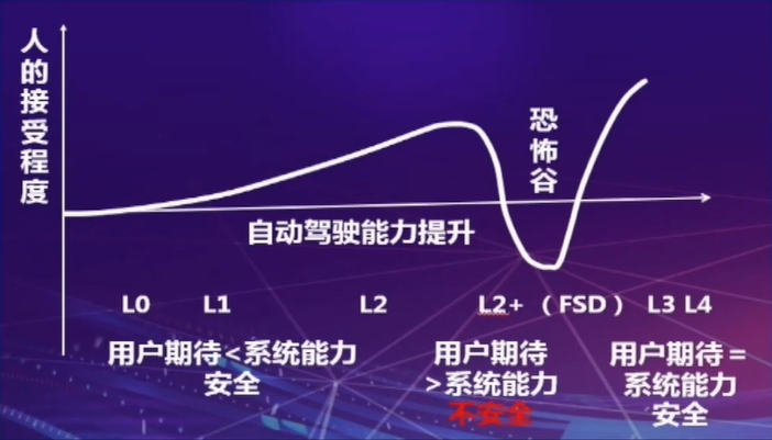 他将这种安全隐患称为“恐怖谷”,因为它发生的概率不高,但一旦发生很有可能是致命的。“恐怖谷”存在的原因,主要是因为用户的期待超过了系统的能力。