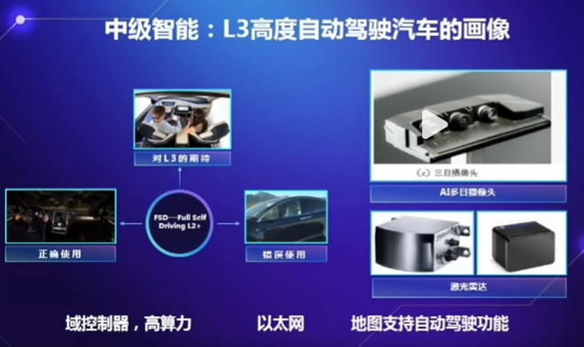 朱西产教授指出,从L3级高度自动驾驶汽车的画像来看,有这样几个特点:高算力的域控制器,车内有以台网,高精度地图(支持自动驾驶功能),环境感知传感器从毫米波雷达转移到高清摄像头。