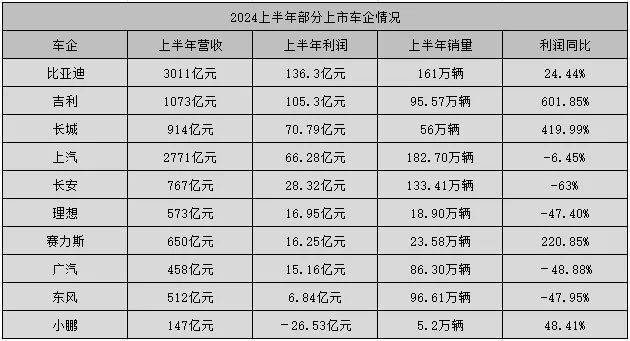 半年财报悉数发布,估计很多人都想不到,上市车企里面,比亚迪利润最高,吉利居其次,长城竟也排在前三位。